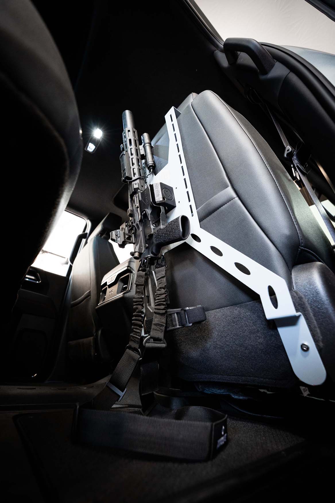 Made in the USA XFrames Truck/SUV Tactical Mount is constructed of steel and a PETG carbon fiber filament composite.